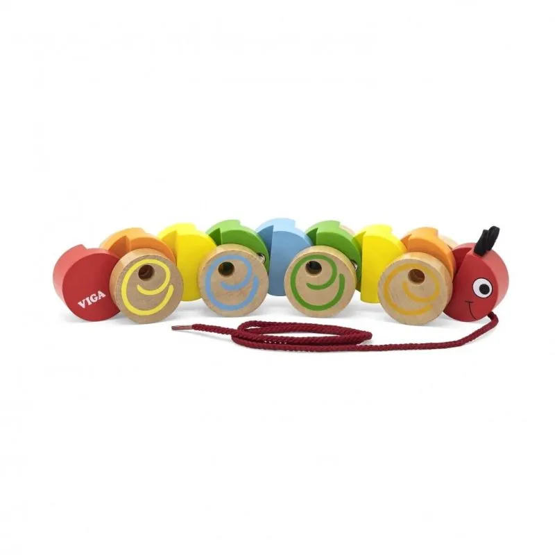 Traukiamas vikšras juda aukštyn ir žemyn. Žaislas skatina vaikus vaikščioti ir bėgioti. Traukiamos virvelės ilgis 70 cm.