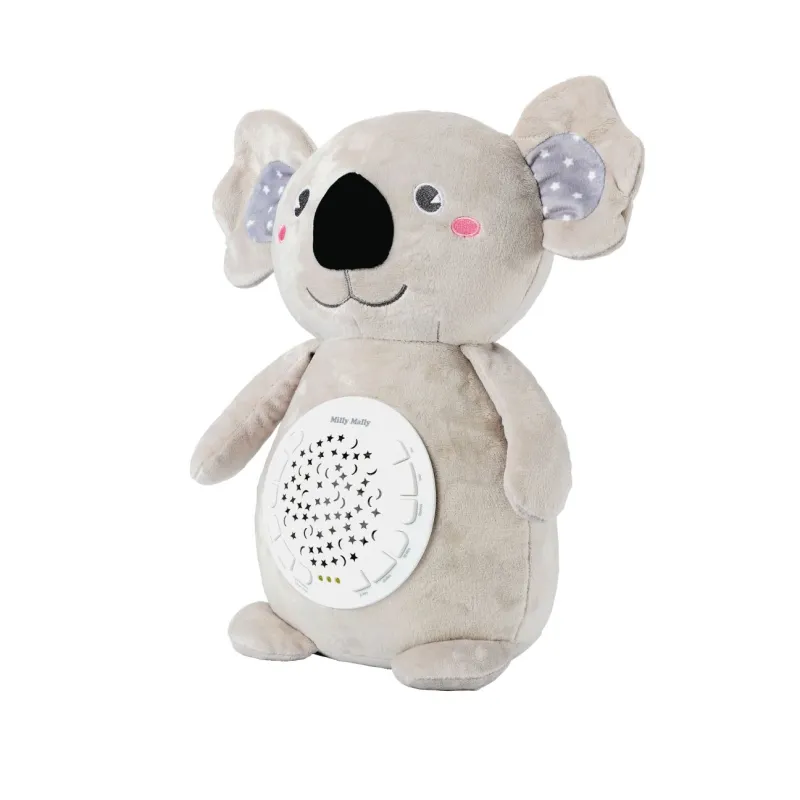 Milly Mally koala yra nepakeičiama priemonė tėvams, kuri padės nuraminti ar užmigdyti kūdikį. Įjungę projektorių išgirsite 10 atsitiktinai parinktų lopšinės melodijų, taip pat bus rodomas naktinis dangus.