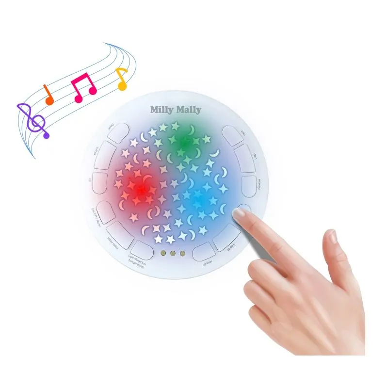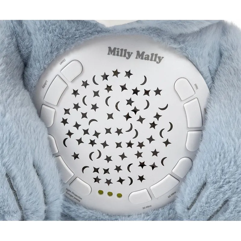 Milly Mally meškiukas yra nepakeičiama priemonė tėvams, kuri padės nuraminti ar užmigdyti kūdikį. Įjungę projektorių išgirsite 10 atsitiktinai parinktų lopšinės melodijų, taip pat bus rodomas naktinis dangus.