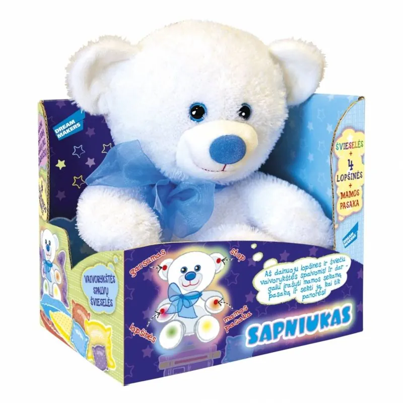 Be įrašymo funkcijos, baltasis meškiukas Sapniukas gali padainuoti šias lopšines: „Svirplys“ „Solveigos lopšinė“ Lopšinė iš kino filmo „Cirkas“ „Pelel, pelel, nešk miegelį“