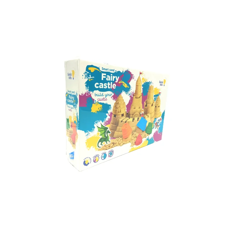 Rinkinys "Pasakų pilis" skirtas jauniesiems statybininkams, kurie mėgsta statyti pastatus. Dabar pilis iš smėlio vaikai pastatys ne tik prie jūros, bet ir savo namuose. Turėdamas būtiniausias priemones, jūsų vaikas galės bet kokiu oru supilti unikalią pilį su bokštais, vartais ir langais. Išmanusis (kinetinis) smėlis gerai klijuojasi, tačiau nelimpa prie rankų, todėl lengvai išsiima iš formelės. Lavina mažąją motoriką ir lytėjimo pojūtį. Puikiai ugdo fantaziją ir kūrybinius gebėjimus. Žaidžiant su kinetiniu smėliu jūsų vaikas atsipalaiduos.