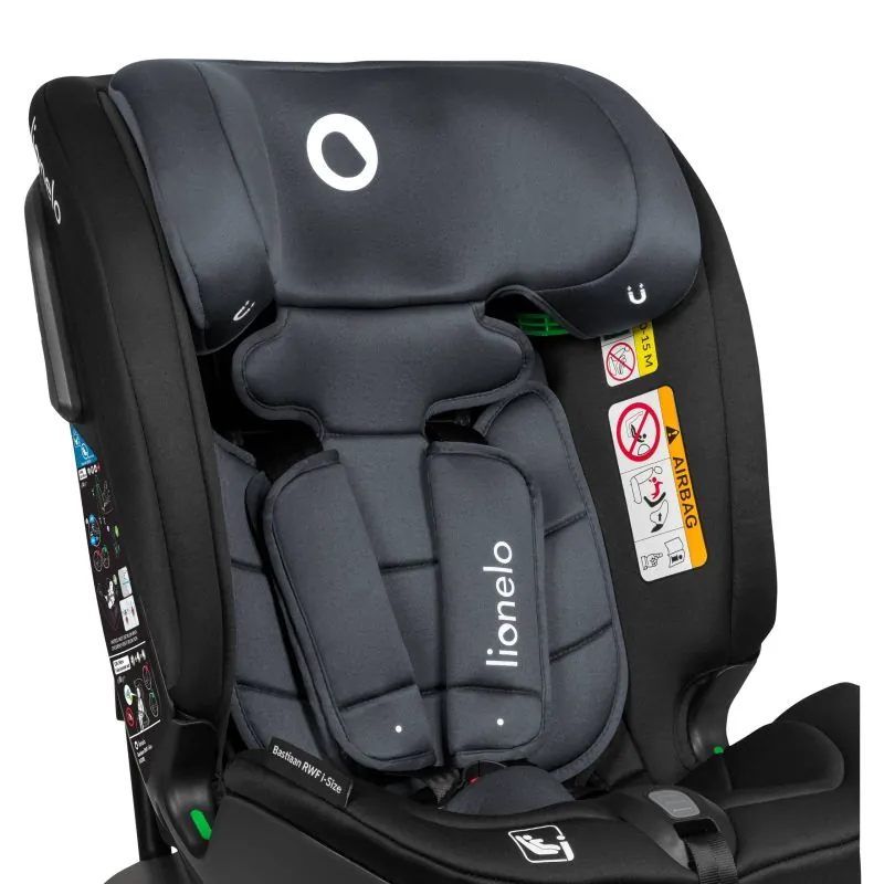 Bastiaan RWF i-Size yra kartu su vaiku auganti kėdutė - išėmus sumažinantį įdėklą kėdutė turi plačią sėdynę, padengtą EPE putomis, kas užtikrina komfortą kasdienėse kelionėse.