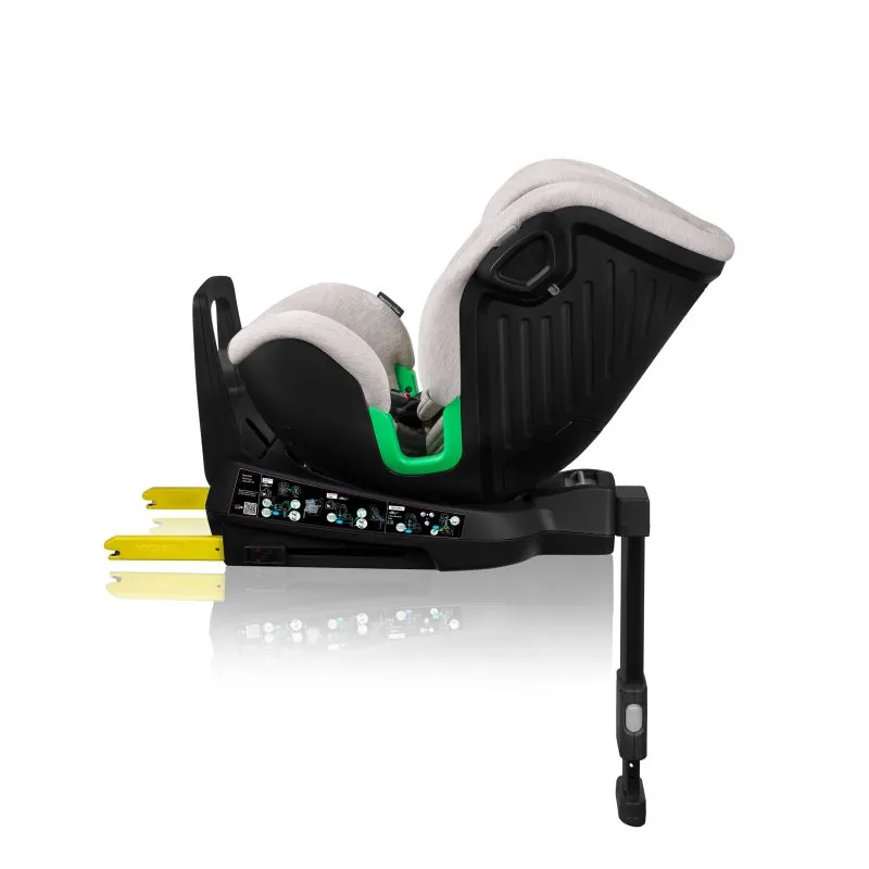 Patvarus ir greitas automobilinės kėdutės montavimas į automobilį su ISOFIX sistema ir stabilizuojančia kojele, kuri tolygiai paskirsto svorį, staigaus stabdymo metu. Dėl kojelės, sėdynė lengvai pasukama į skirtingas puses.
