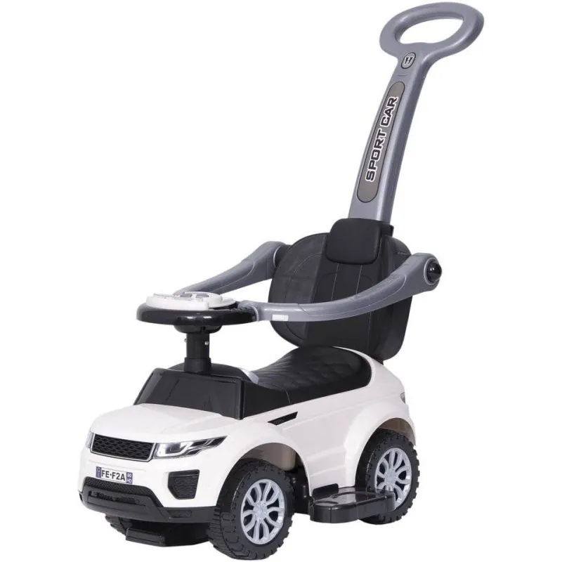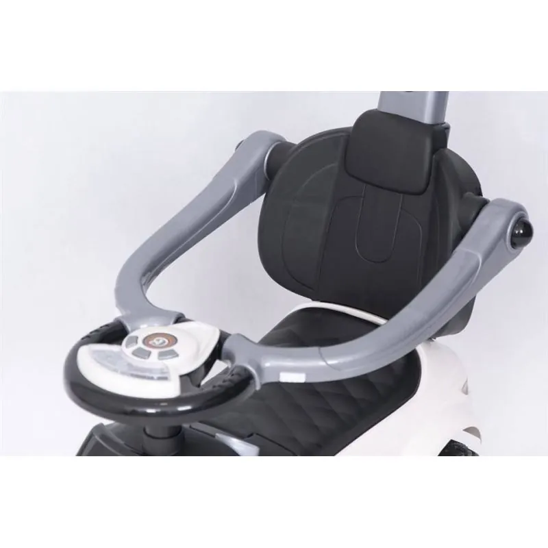 Ši mašinėlė turi apsaugas nuo šoninio ir atbulinio apvirtimo, kojyčių padėkliukus bei rankenėlę mašnėlės stūmimui. Šiuos priedus bus galima nuimti, kai vaikas norės važinėtis su mašinėle pats.