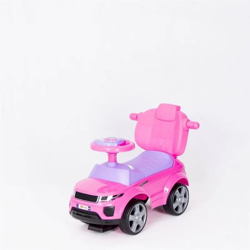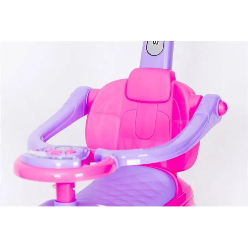 Ši mašinėlė turi apsaugas nuo šoninio ir atbulinio apvirtimo, kojyčių padėkliukus bei rankenėlę mašnėlės stūmimui. Šiuos priedus bus galima nuimti, kai vaikas norės važinėtis su mašinėle pats.