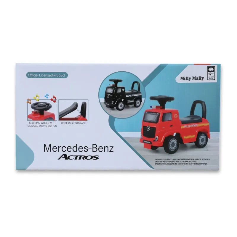 Licencijuota Mercedes-Benz Actros Fire Truck transporto priemonė pagaminta iš aukščiausios kokybės medžiagų. Didelis dėmesys sutelktas smulkiausioms gamybos proceso detalėms. Pasivažinėjimo daugiafunkciškumas užtikrins, kad vaikui nenusibos važinėjimas mašinėle, o žaisdamas lavins rankinius įgūdžius ir motoriką. Be jokios abejonės, ši transporto priemonė lavina pusiausvyros jausmą, suteikdama vaikui malonumą vairuojant.