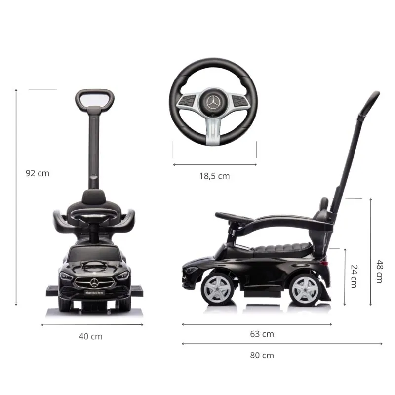 Milly Mally paspiriama mašinėlė su stūmimo rankena MERCEDES C-Class Deluxe, Black