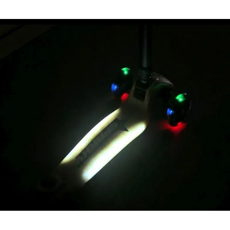 Sparky išsiskiria šviečiančiais LED priekiniais ratais, papildomu platformos ir išilginių linijų šonuose apšvietimu, kurie kartu sukuria išties įspūdingą šviesų šou važiuojant – puikiai tinka vakarinėms išvykoms! Blizganti apdaila priverčia paspirtuką įspūdingai žėrėti saulėje.