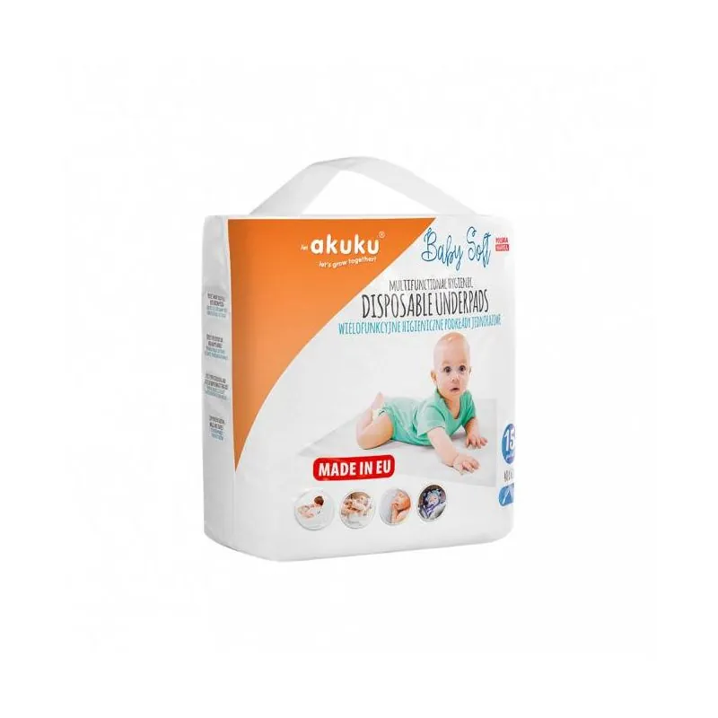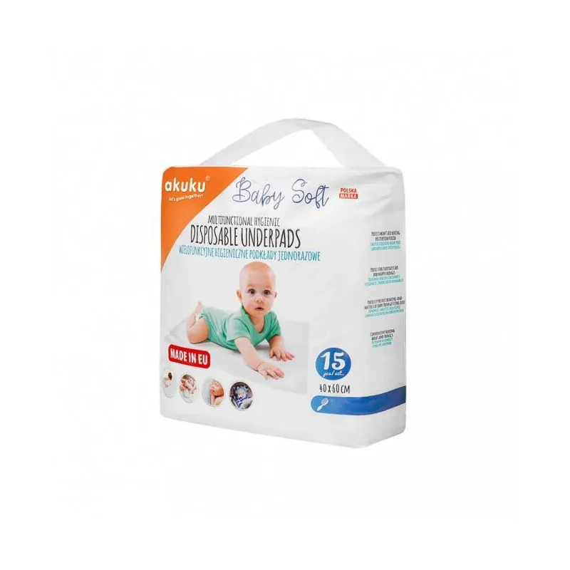 Akuku kūdikio pervystymo paklotai SOFT, 40x60, 15 vnt., A0500