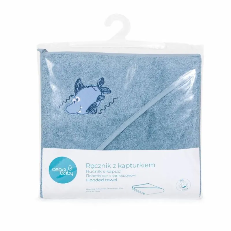 CebaBaby rankšluostis su gobtuvu 100x100 mėlynas, ryklys