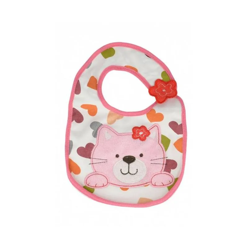 Patvarus įdomių raštų seilinukas, pasiūtas iš storos medvilnės ir plono EVA aliejinio audinio.