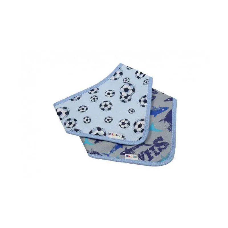 Akuku dvisluoksnių seilinuką-kaklaskarių rinkinys. Pakuotėje yra 2 seilinukai.