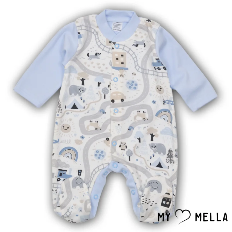 Šliaužtinukas ilgomis rankovėmis "Miestas", melsva, 56, 62cm.