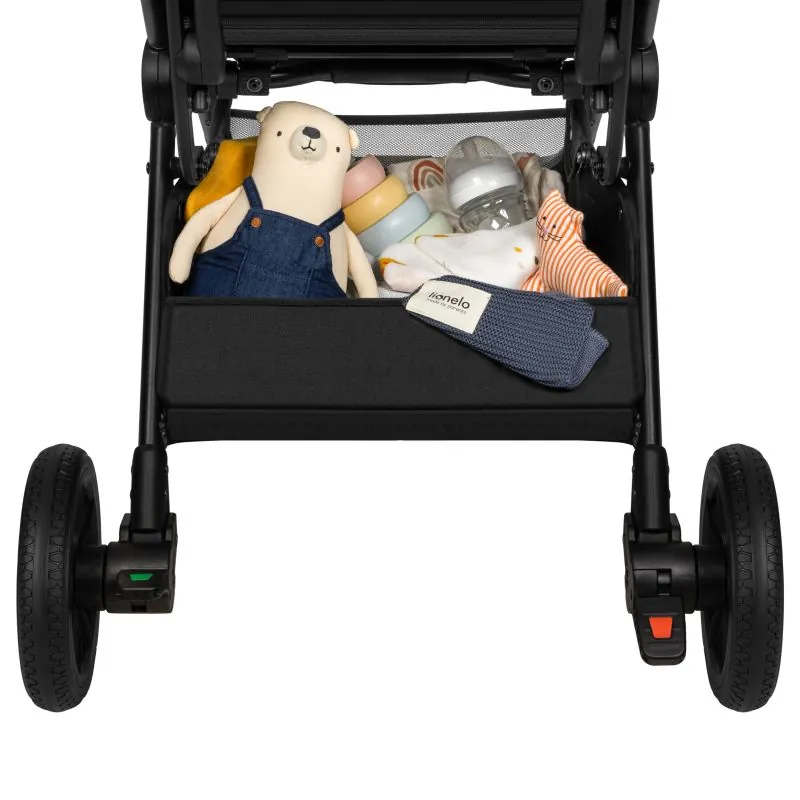 Dideliame, talpiame krepšyje po sėdyne galite sutalpinti pirkinius ar visus pasivaikščiojimui reikalingus priedus.