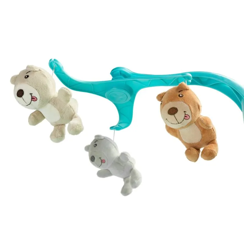 Karuselė su linksmais ir ryškiaspalviais pliušiniais žaisliukais;