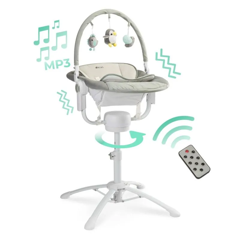 Sūpynės variantas turi vibracijos funkciją, sukimosi ir integruotas melodijas;