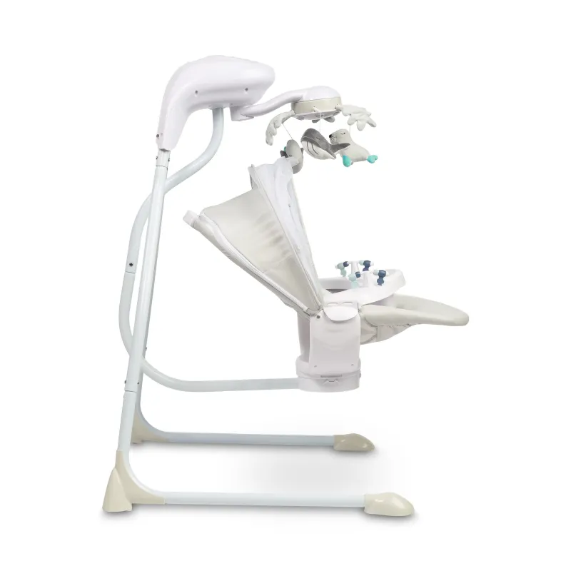 Dviejų pakopų atlošo reguliavimas leidžia vaiką pastatyti gulint ar pusiau gulint. Pasukdami sėdynę 90 laipsnių kampu (kairėn ar dešinėn) galite pakeisti supimo būdą (iš dešinės į kairę į priekį ir atgal).