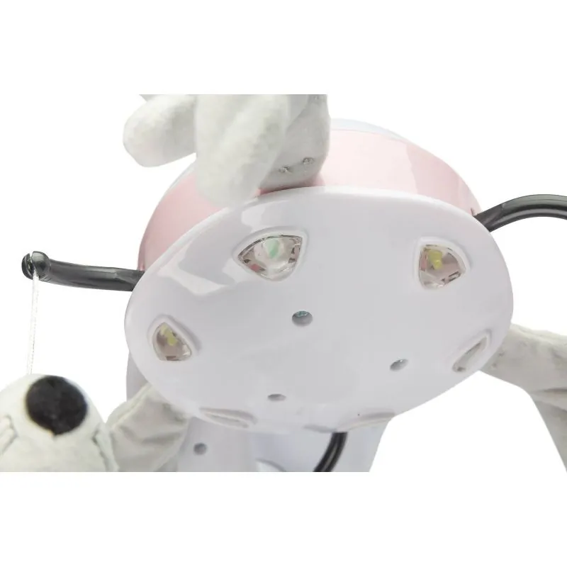 Besisukanti karuselė su įdomiais žaislais ir lempomis padeda lavinti vaiko dėmesį.