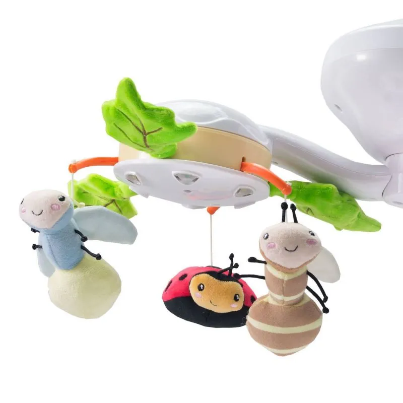 Besisukanti karuselė su įdomiais žaislais ir lempomis padeda lavinti vaiko dėmesį.