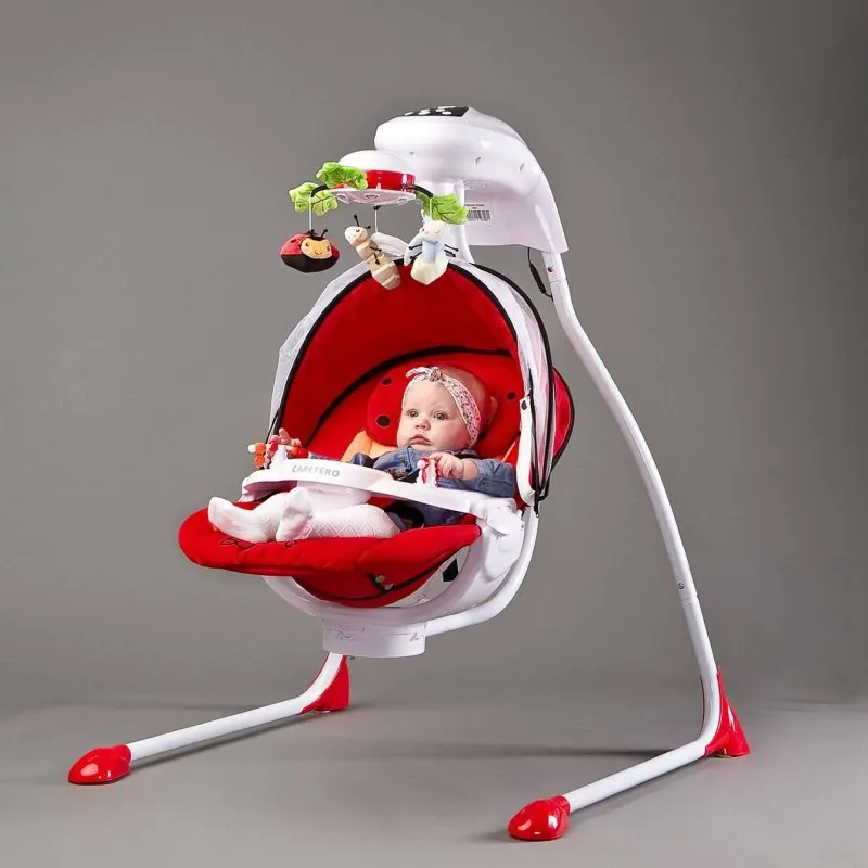 Dviejų pakopų atlošo reguliavimas leidžia vaiką pastatyti gulint ar pusiau gulint. Pasukdami sėdynę 90 laipsnių kampu (kairėn ar dešinėn) galite pakeisti supimo būdą (iš dešinės į kairę į priekį ir atgal).