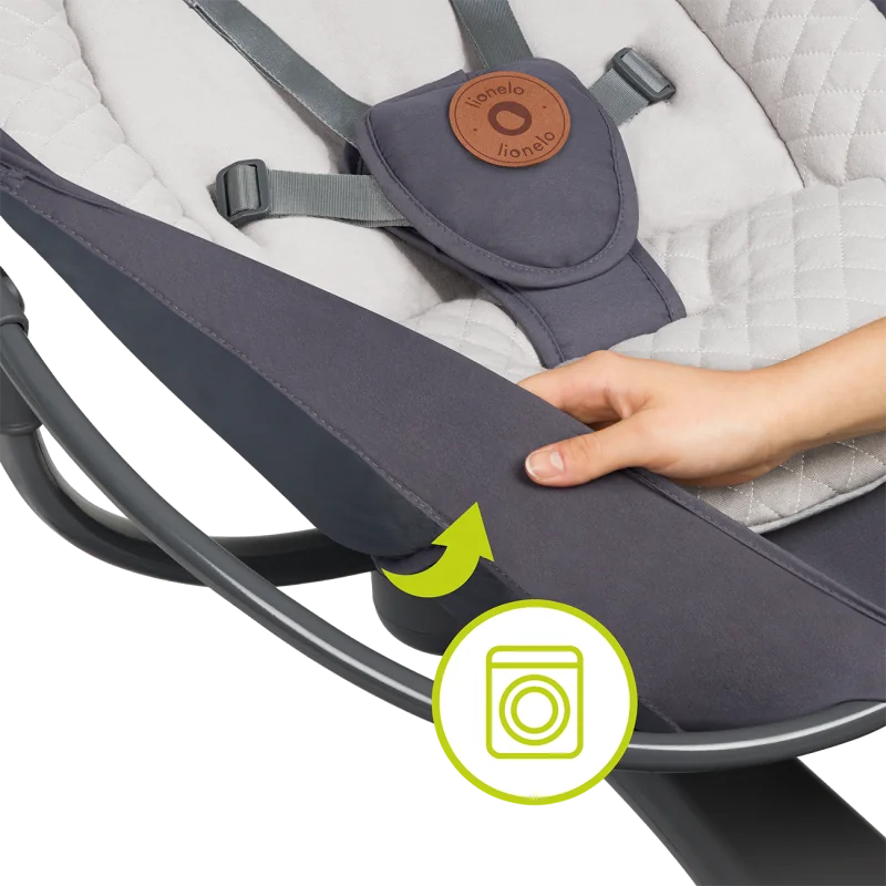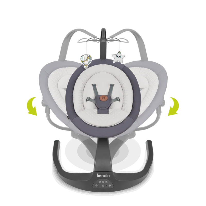 Lionelo Rina supynės - gultukas gali būti naudojamas vaikui nuo gimimo iki 9 kg, arba kol pats pradės sėstis. Turi automatinį judesio detektorių.
