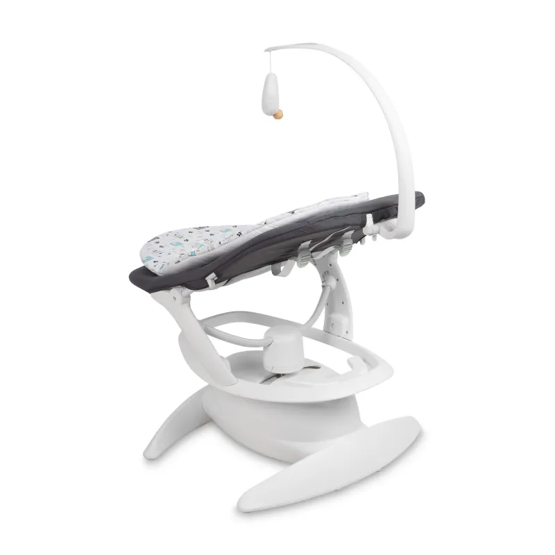 360° pasukama sėdynė leidžia keisti siūbavimo kryptį ir palaikyti akių kontaktą su mažyliu;