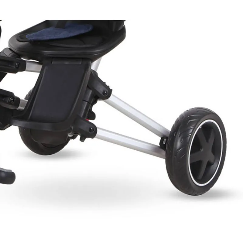 Šis rėmas yra lengvai ir visiškai sulankstomas, todėl triratis gali važiuoti bet kur.