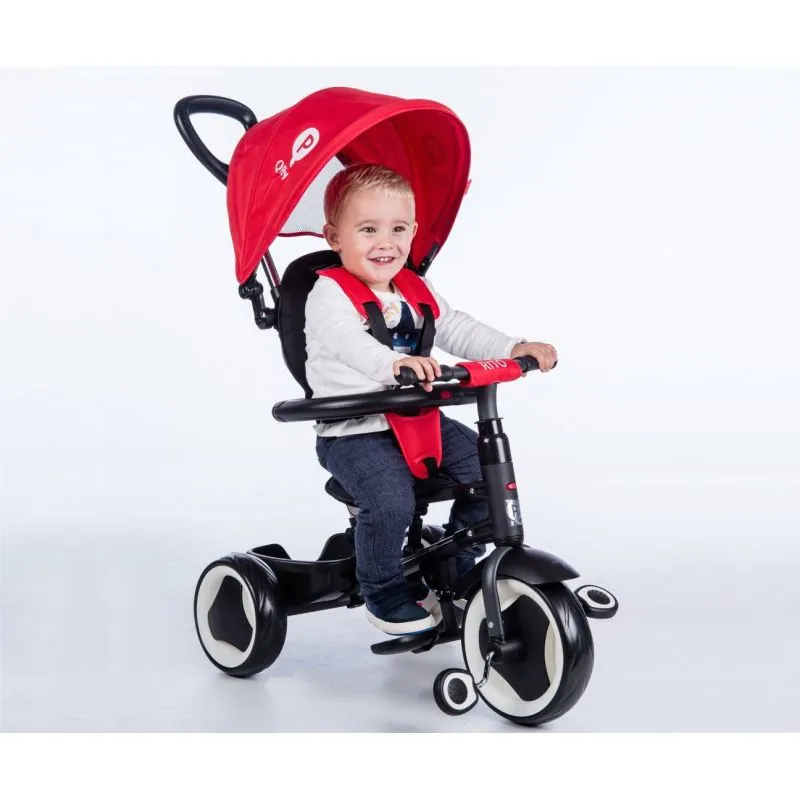 Kol vaikas išmoks savarankiškai vairuoti ir valdyti triratuką, tėveliai stumdami triratuką reguliuos važiavimo kryptį.