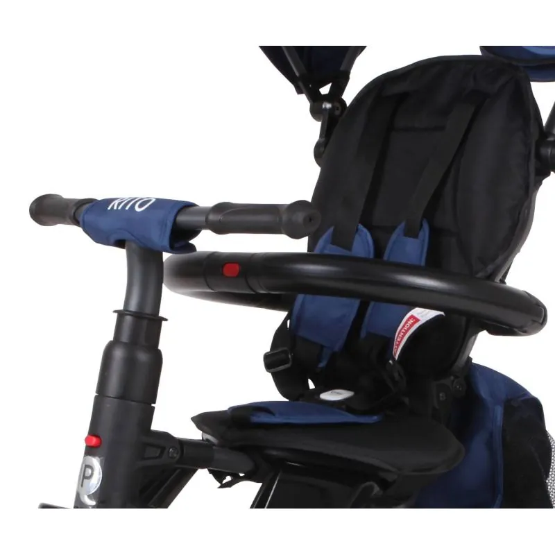 Vairą galima užrakinti, kad vaikas negalėtų vairuoti, o triratukas važiuotų tik tiesiai.