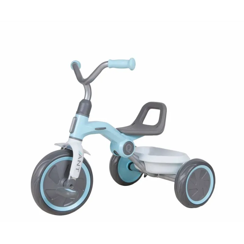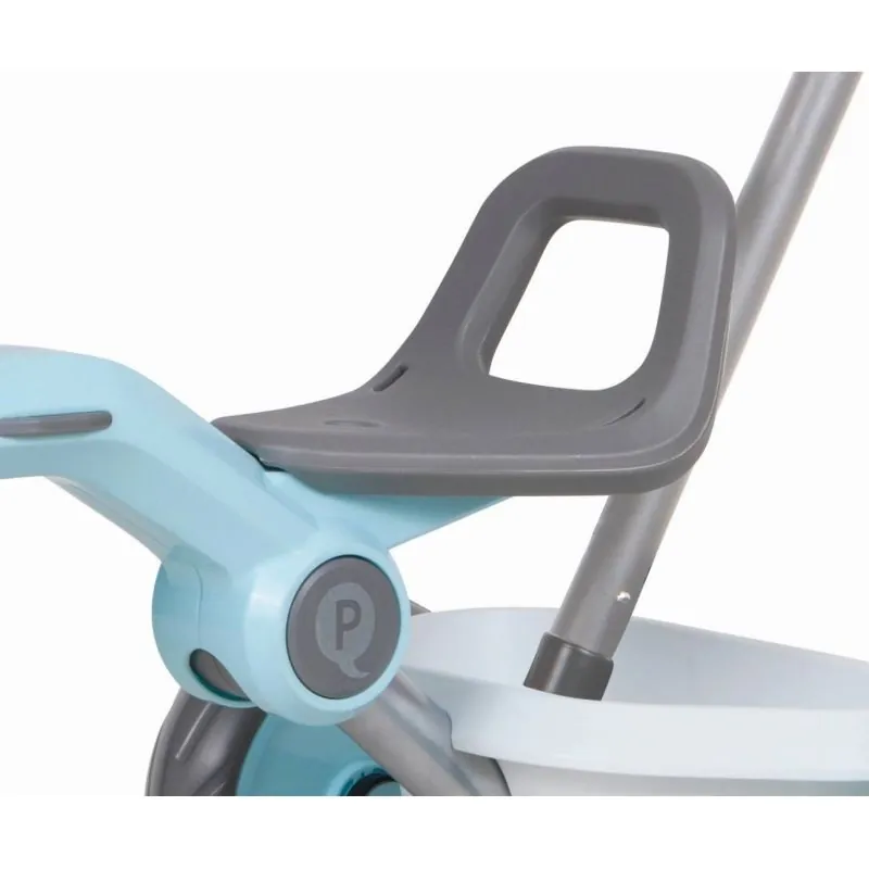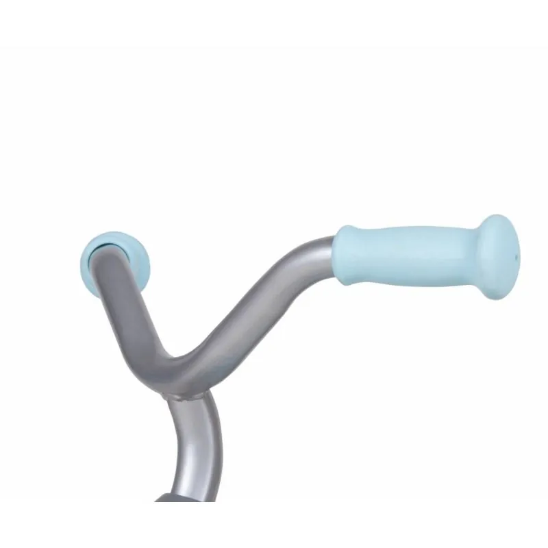 Dėka „laisvo rato“ funkcijos vaikas gali remtis kojomis ant pedalų, kol tėvai stumia triratį rankenos pagalba.