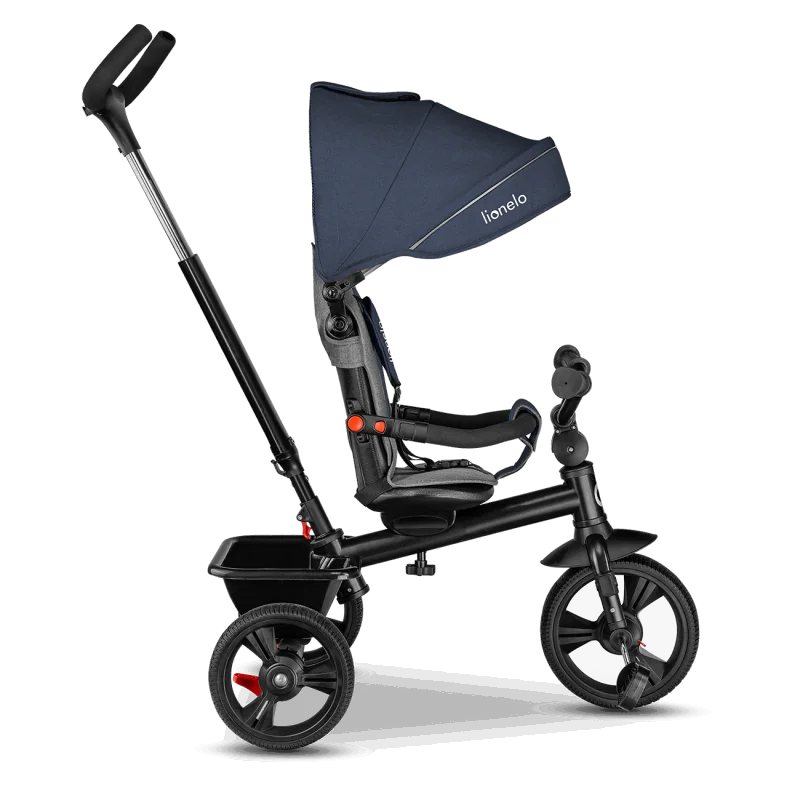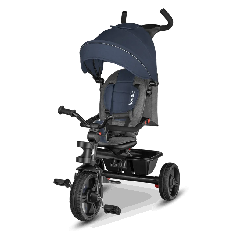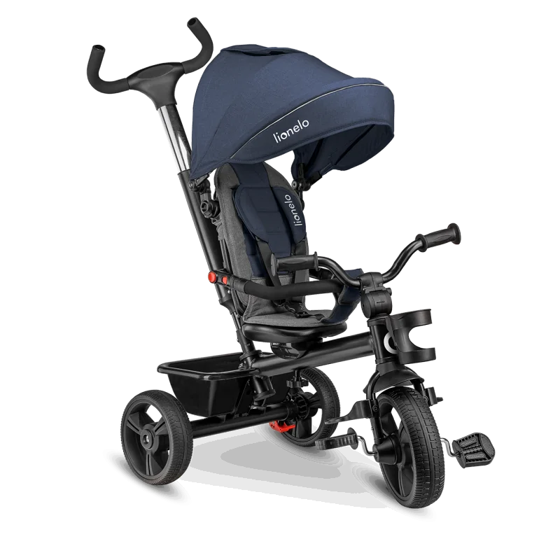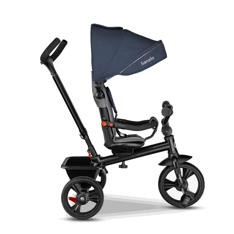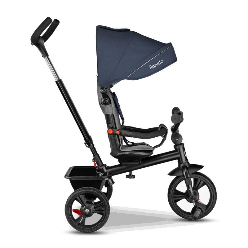 Atšvaitai ant stogelio (apsauga nuo lietaus ir saulės) pabrėžia triračio Lionelo Haari matomumą kelyje!