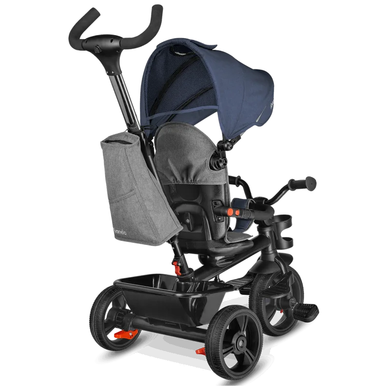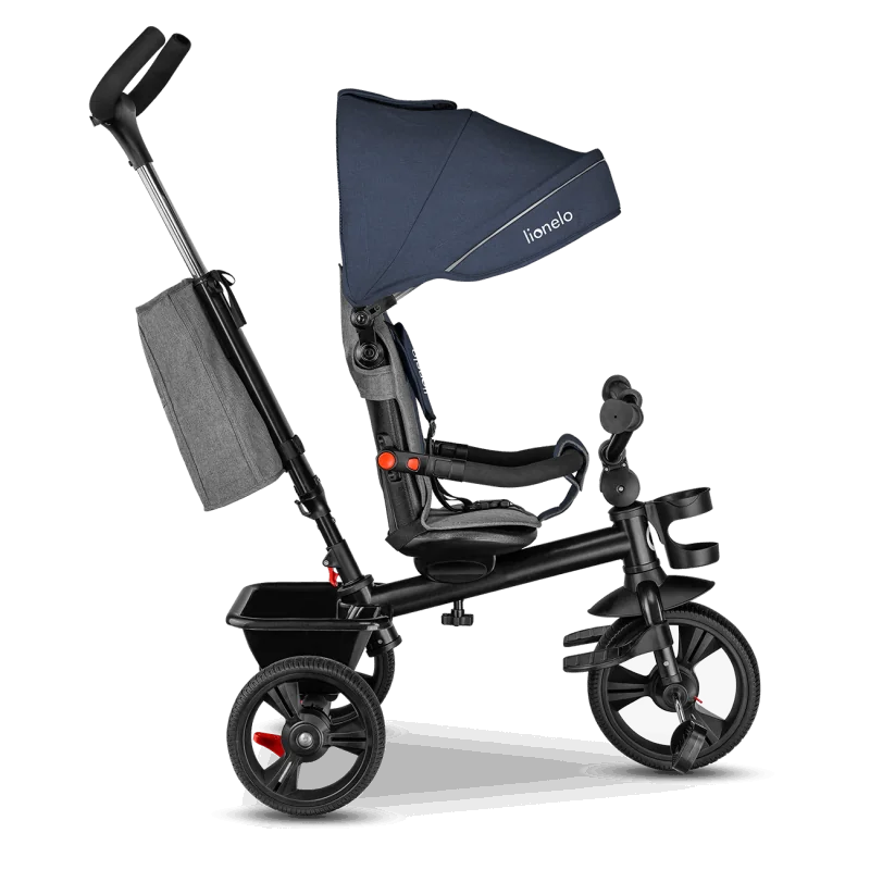 Komplektacijoje krepšelis žaislams ir praktiškas puodelio ar buteliuko laikiklis.
