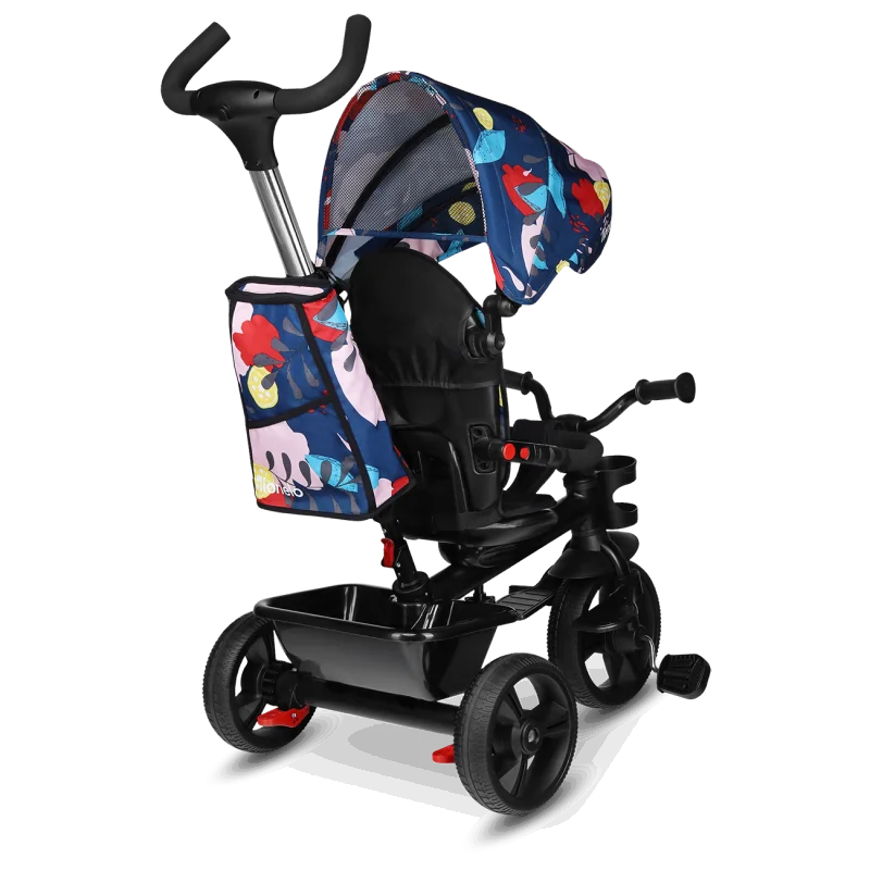 Komplektacijoje krepšelis žaislams ir praktiškas puodelio ar buteliuko laikiklis.