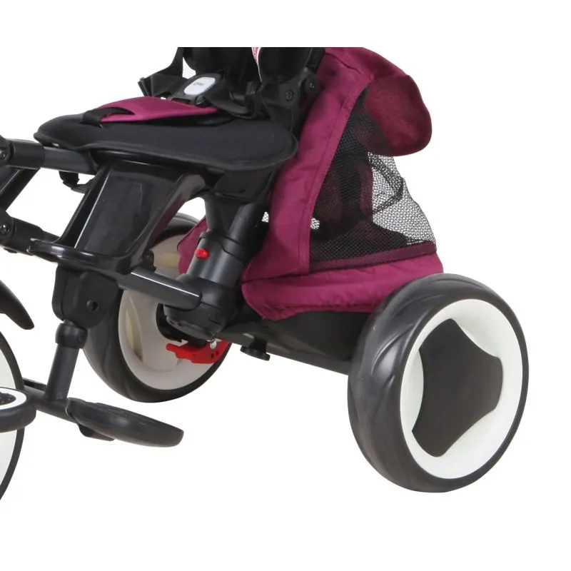 Triratukas - vežimėlis kompaktiškai sulankstomas su reguliuojamo aukščio stumimo rankena.
