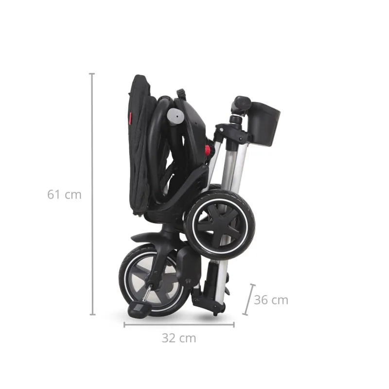 Šis rėmas yra lengvai ir visiškai sulankstomas, todėl triratis gali važiuoti bet kur.