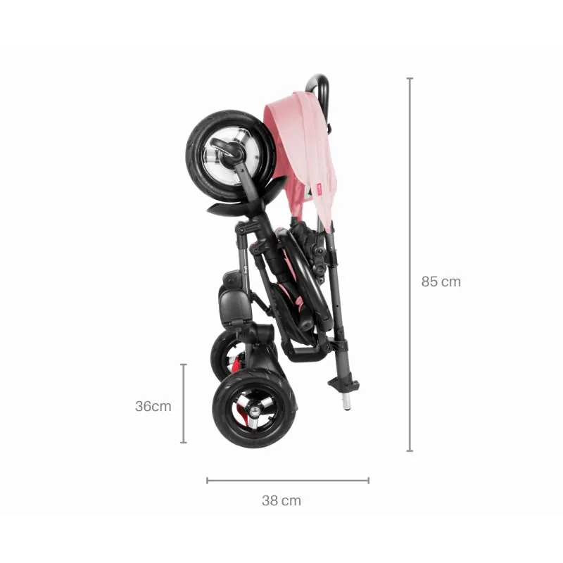 Triratukas - vežimėlis kompaktiškai sulankstomas su reguliuojamo aukščio stumimo rankena.