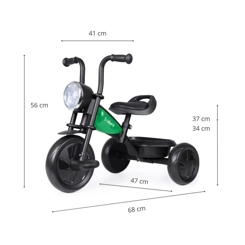 Triratukas Triduro,turi unikalų rėmą, imitacinius degalų bakus , todėl atrodo kaip tikras motociklas;