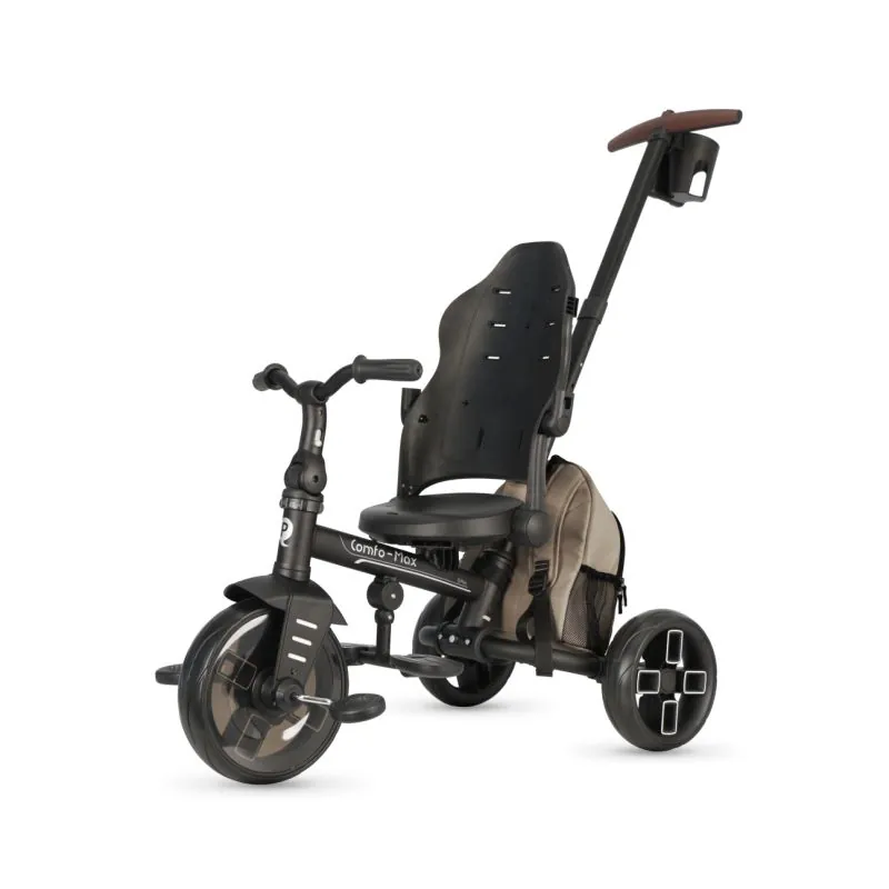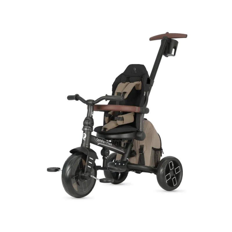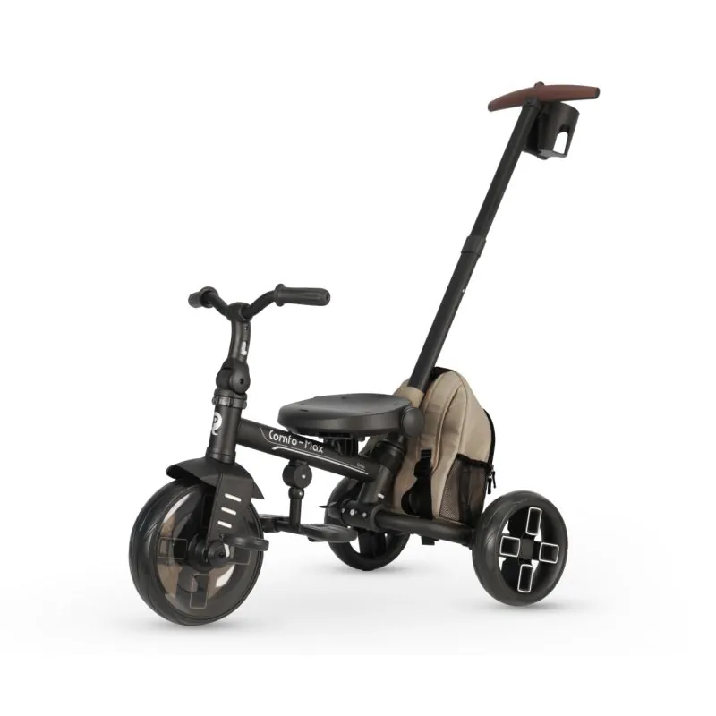 Kol vaikas išmoks savarankiškai vairuoti ir valdyti triratuką, tėveliai stumdami triratuką reguliuos važiavimo kryptį.