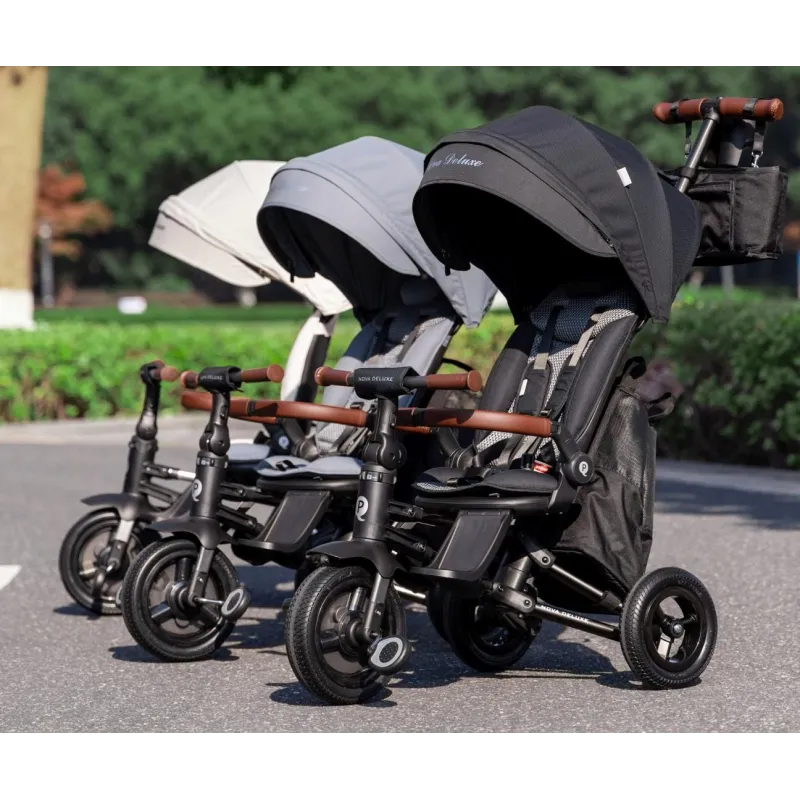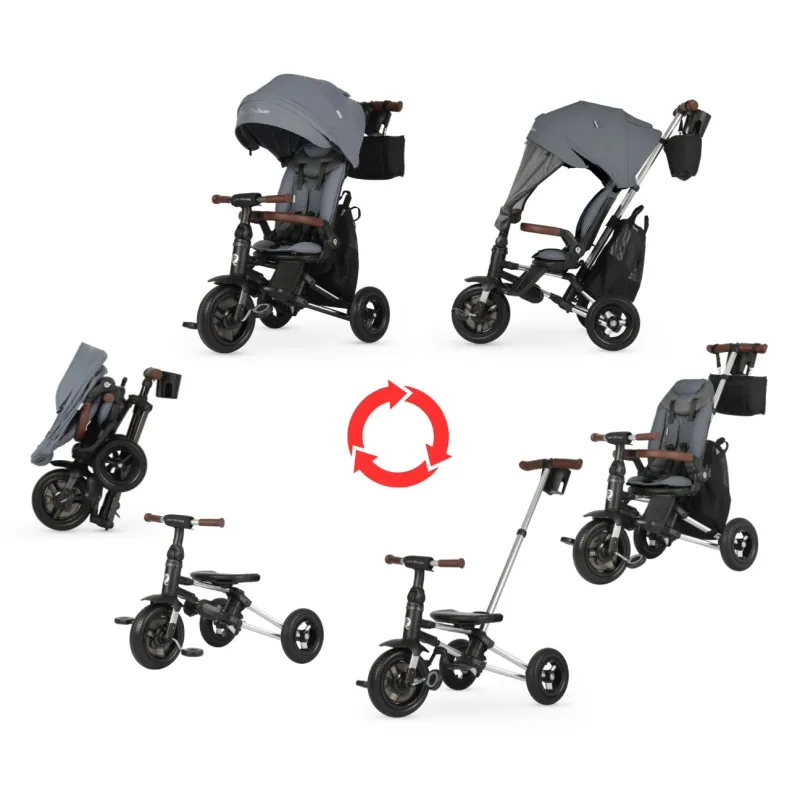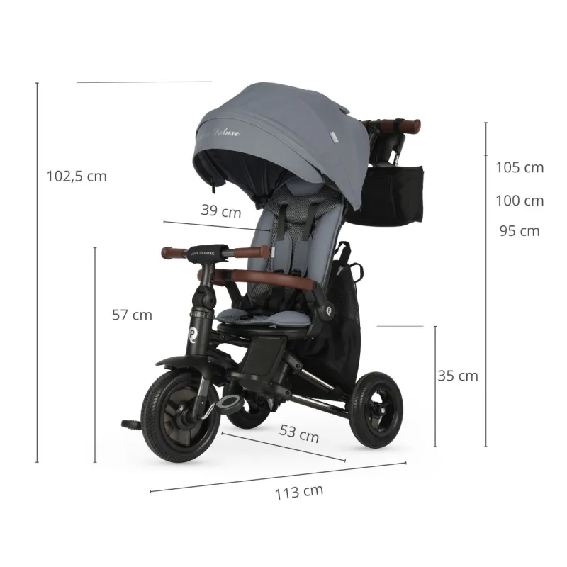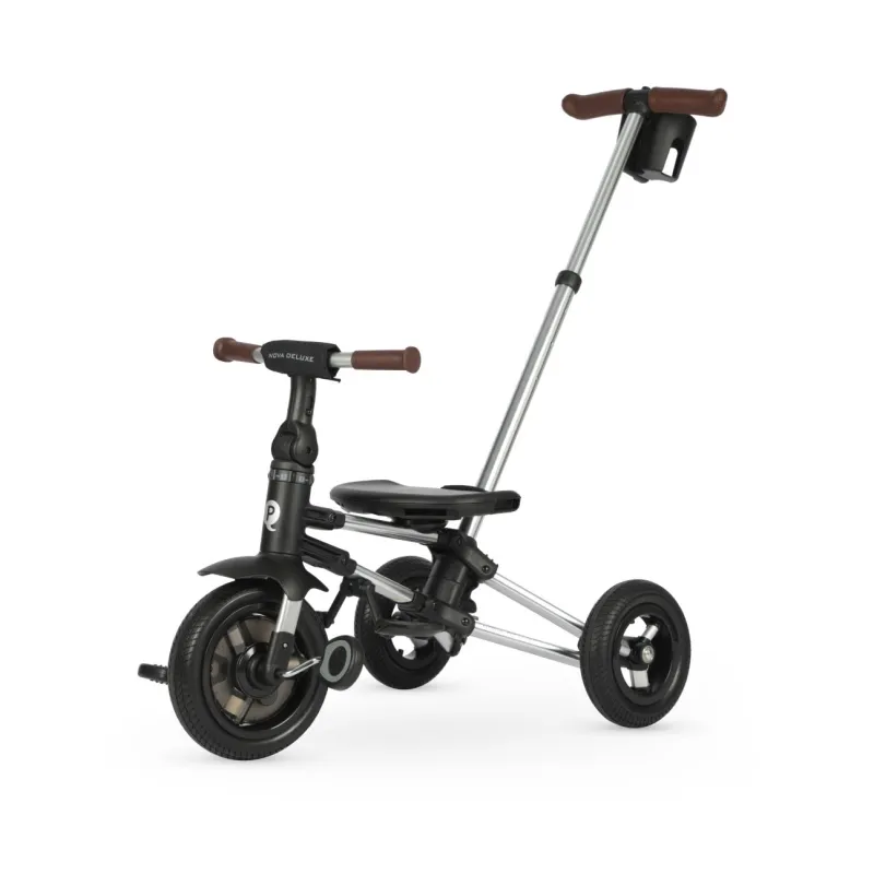 Qplay triratukas Nova Deluxe yra stabilus ir saugus, pasižymi modernia aliuminio konstrukcija, patogia kontūruota „360“ sėdyne, leidžiančia važiuoti pirmyn arba atgal važiavimo kryptimi. Surinkimui nereikia jokių įrankių – greito sulankstymo sistema leidžia sulankstyti triratį vos keliais paprastais judesiais.