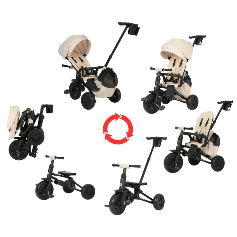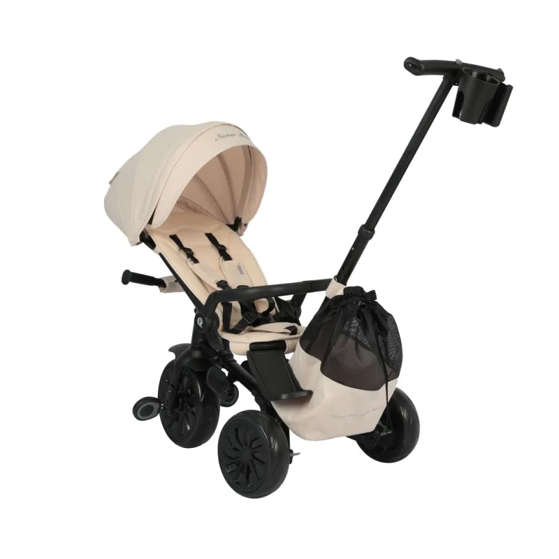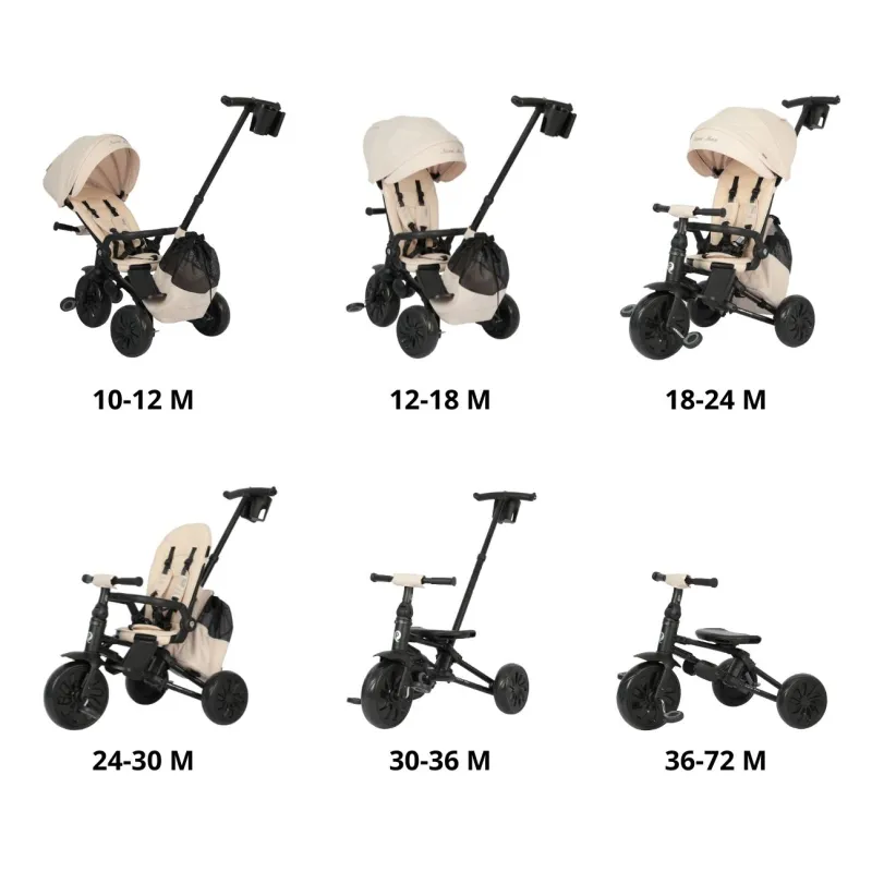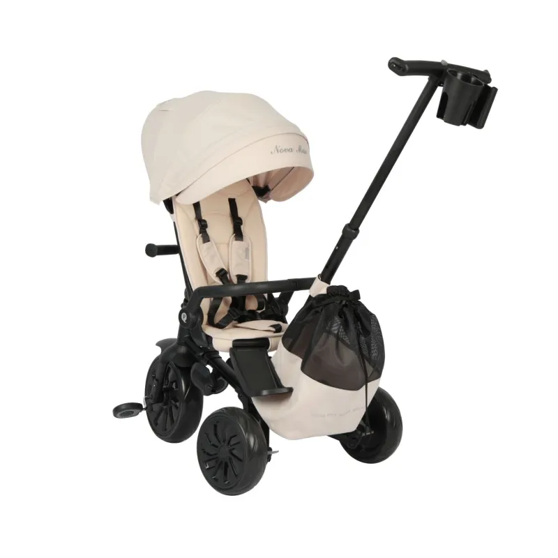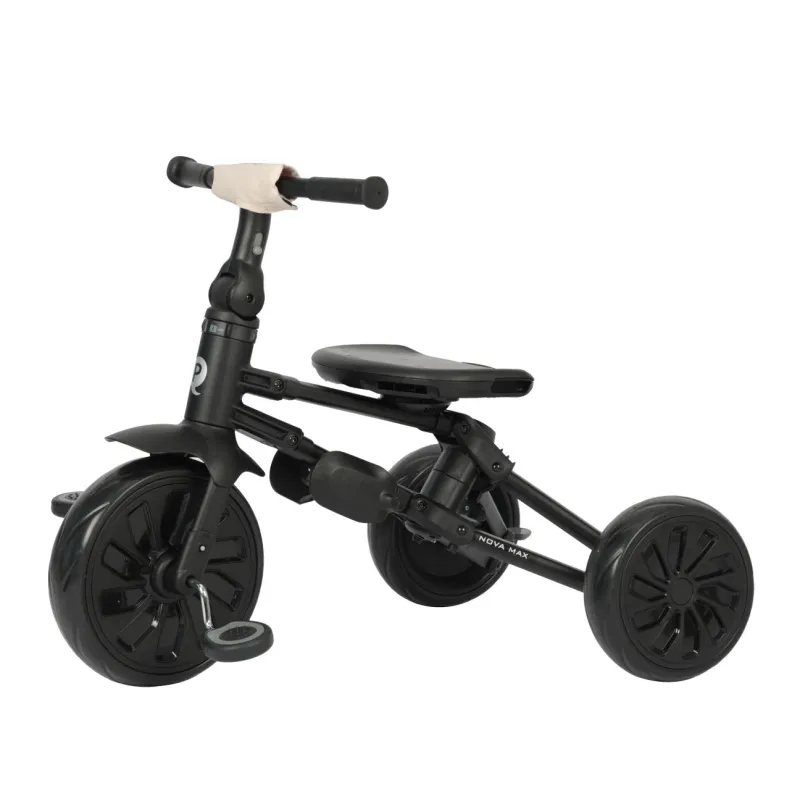 Qplay triratukas Nova Max yra stabilus ir saugus, pasižymi modernia aliuminio konstrukcija, patogia kontūruota „360“ sėdyne, leidžiančia važiuoti pirmyn arba atgal važiavimo kryptimi. Surinkimui nereikia jokių įrankių – greito sulankstymo sistema leidžia sulankstyti triratį vos keliais paprastais judesiais.