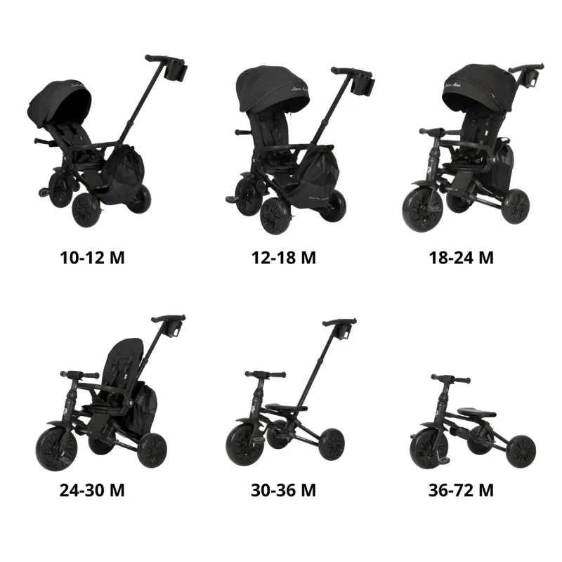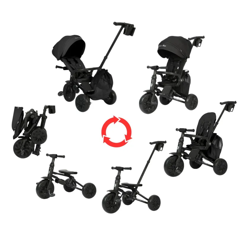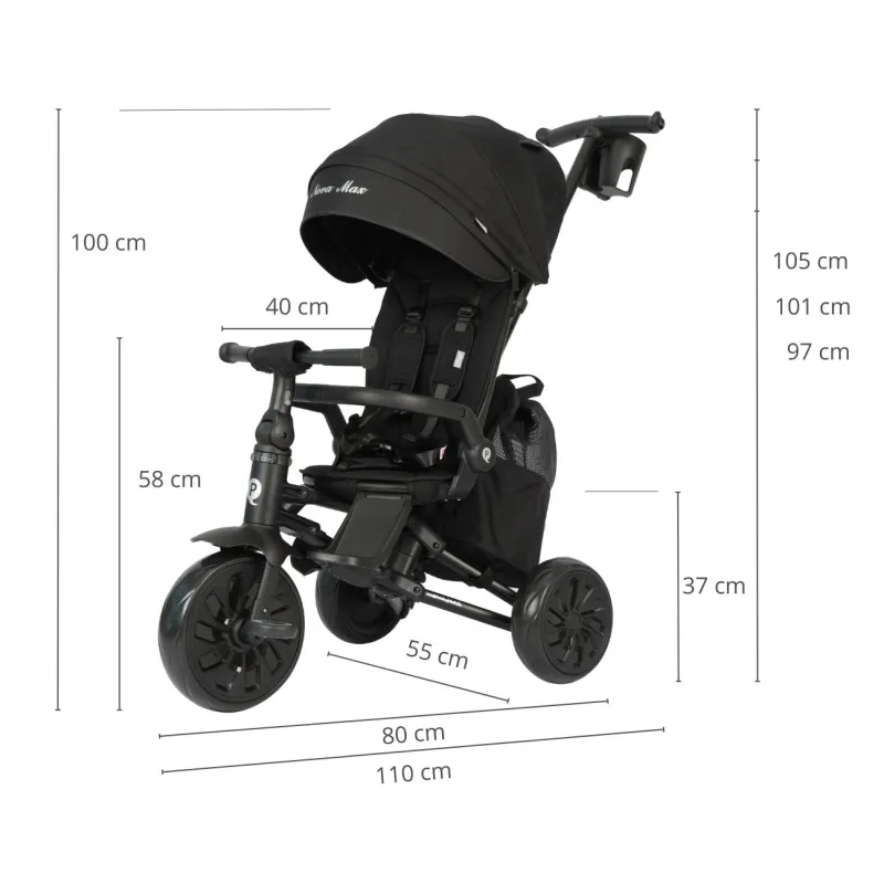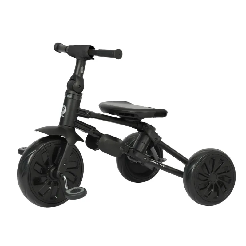 Qplay triratukas Nova Max yra stabilus ir saugus, pasižymi modernia aliuminio konstrukcija, patogia kontūruota „360“ sėdyne, leidžiančia važiuoti pirmyn arba atgal važiavimo kryptimi. Surinkimui nereikia jokių įrankių – greito sulankstymo sistema leidžia sulankstyti triratį vos keliais paprastais judesiais.