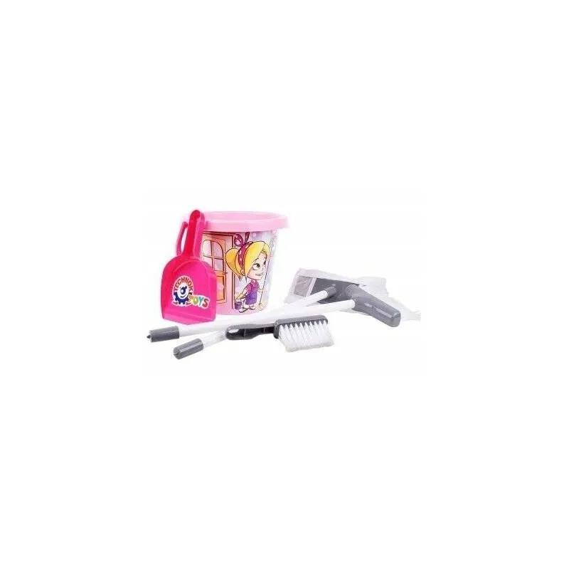 Rinkinį sudaro didelis ryškus kibiras, šluotos ir semtuvėlis.