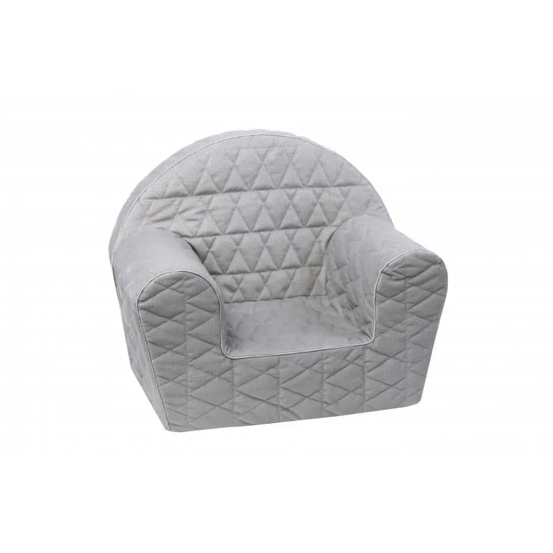 Pilkaos spalvos, universalus dygsniuotas foteliukas vaikams. Iš kokybiškos, medvilnės medžiagos pagamintas foteliukas yra lengvai prižiūrimas.