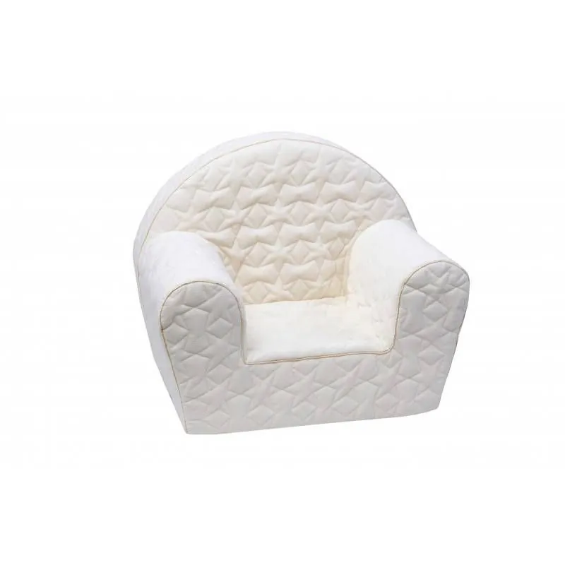 Gelsvos spalvos vaikiškas, dygsniuotas foteliukas. Šį foteliuką dažnai vaikai naudoja ne tik kaip sėdėjimo priemonę, tačiau ir kaip žaidimo. Puikiai tinka naudoti ir fotosesijoms bei kambarių dekoracijai.