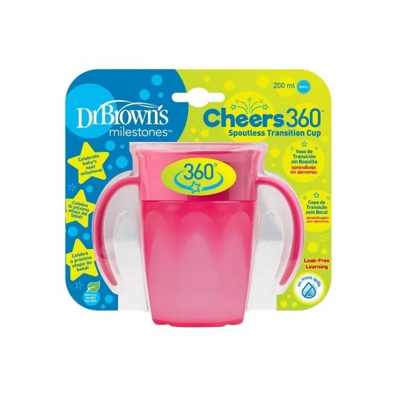 DR. BROWN'S 200 ml gertuvė "CHEERS 360", 6+ mėn., rožinė