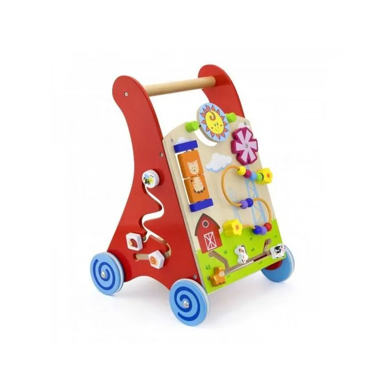 Daugiafunkcinis medinis stumdukas su guminiais ratukais ir daugybe įdomios veiklos.