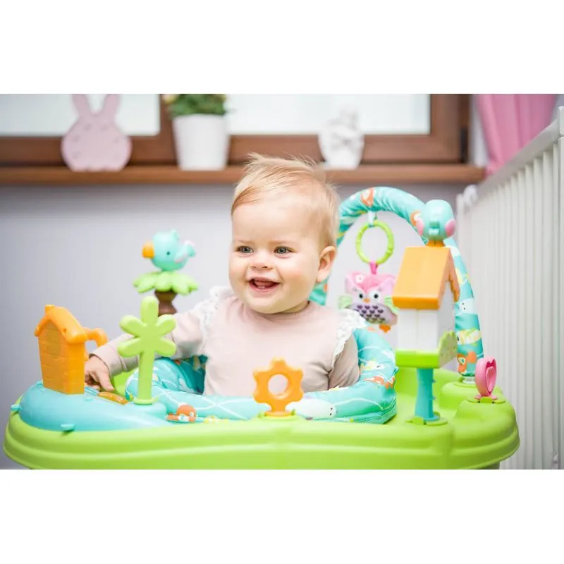 Todėl vaikštynėje „Aloha“ yra daugybė žaislų, kurie jūsų vaiką ilgam užims. Interaktyvus skydelis su mygtukais.