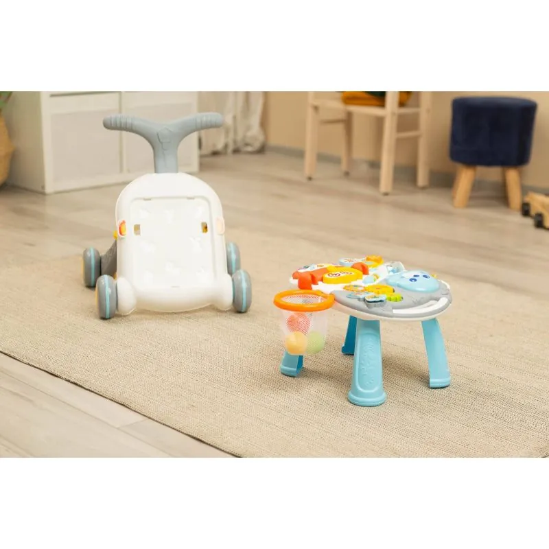 Ratukas, formos, krepšys su kamuoliukais, sukamas barškutis visa tai vaiko žaidimui bei tobulėjimui;