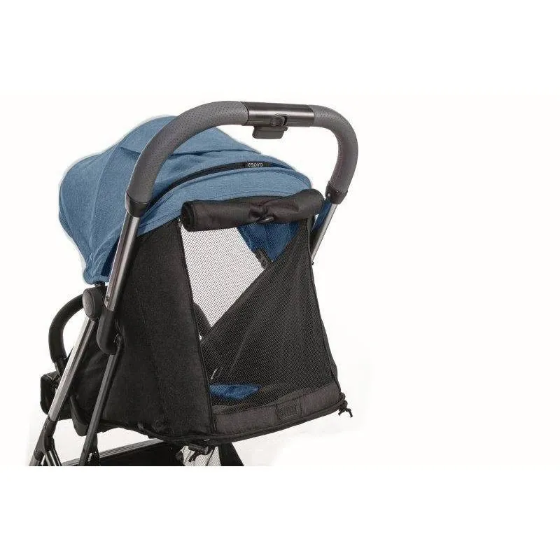 Sportinis vežimėlis Espiro Art susilnkstęs užima labai nedaug vietos, tačiau yra labai erdvus vaikui ir turi gero uždarumo stogelį