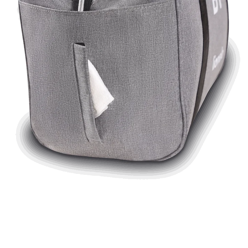 2 erdvios šoninės kišenės, viena skirta drėgnoms servetėlėms.